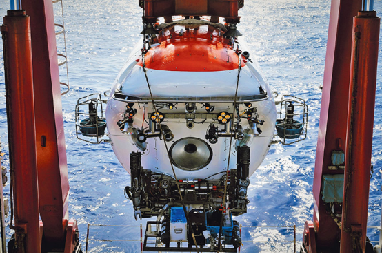 圖為2024年9月11日,“蛟龍”號載人潛水器在維嘉海山完成2024西太平洋國際航次科考最后一個潛次下潛作業。作為我國自主研發的7000米級載人潛水器,“蛟龍”號是我國認識深海和經略深海的國之重器。 新華社記者 王聿昊/攝