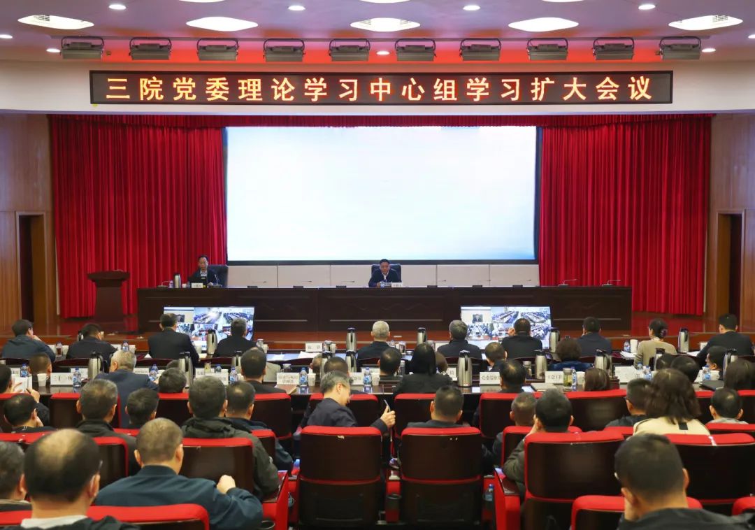 三院全體在家院領(lǐng)導(dǎo)、本部各部門負(fù)責(zé)人,院屬單位領(lǐng)導(dǎo)班子成員,部分單位相關(guān)部門負(fù)責(zé)人等300余人在主會(huì)場(chǎng)和視頻分會(huì)場(chǎng)參加學(xué)習(xí)。三院黨委書記施毅主持學(xué)習(xí)會(huì)。