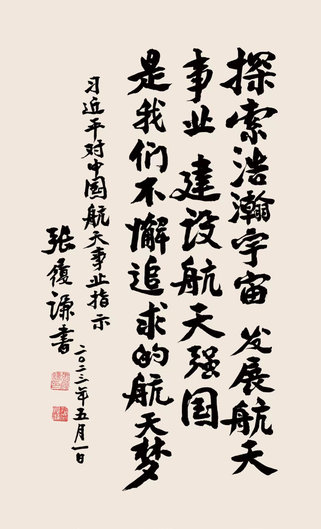 張履謙院士是我國雷達、電子對抗和航天技術領域的著名專家,中國工程院院士,是我國航天事業發展的親歷者見證人。本次書法展分為“領導指示”“航天精神”“對青少年的鼓舞”“詩詞格言”等四個專題,共展出張履謙院士書法作品百余幅作品。